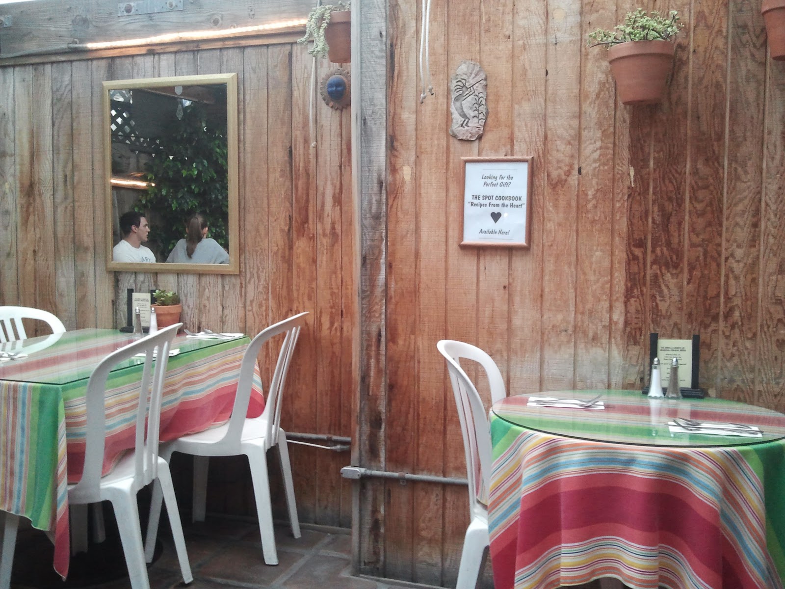 On a beautiful evening, my dining partner and I headed to the beachy Vegetarian cafe, The Spot, in Hermosa Beach. I was excited to try the food at this quaint cafe that I had only heard positive things about. I purchased their Groupon deal for $20 worth of food and drinks for $10. We sat down outside and admired the eclectic decor, reminiscent of a cozy, traditional Mexican restaurant. I felt very relaxed and could almost feel the light breeze from the beach, just steps away. We looked over the menu, which mostly consisted of Mexican dishes but also included Italian and healthy stir-fries. I desired Mexican food, while my dining partner was craving mashed potatoes. Luckily, most of the menu could be made vegan with an easy substitution of soy cheese.
